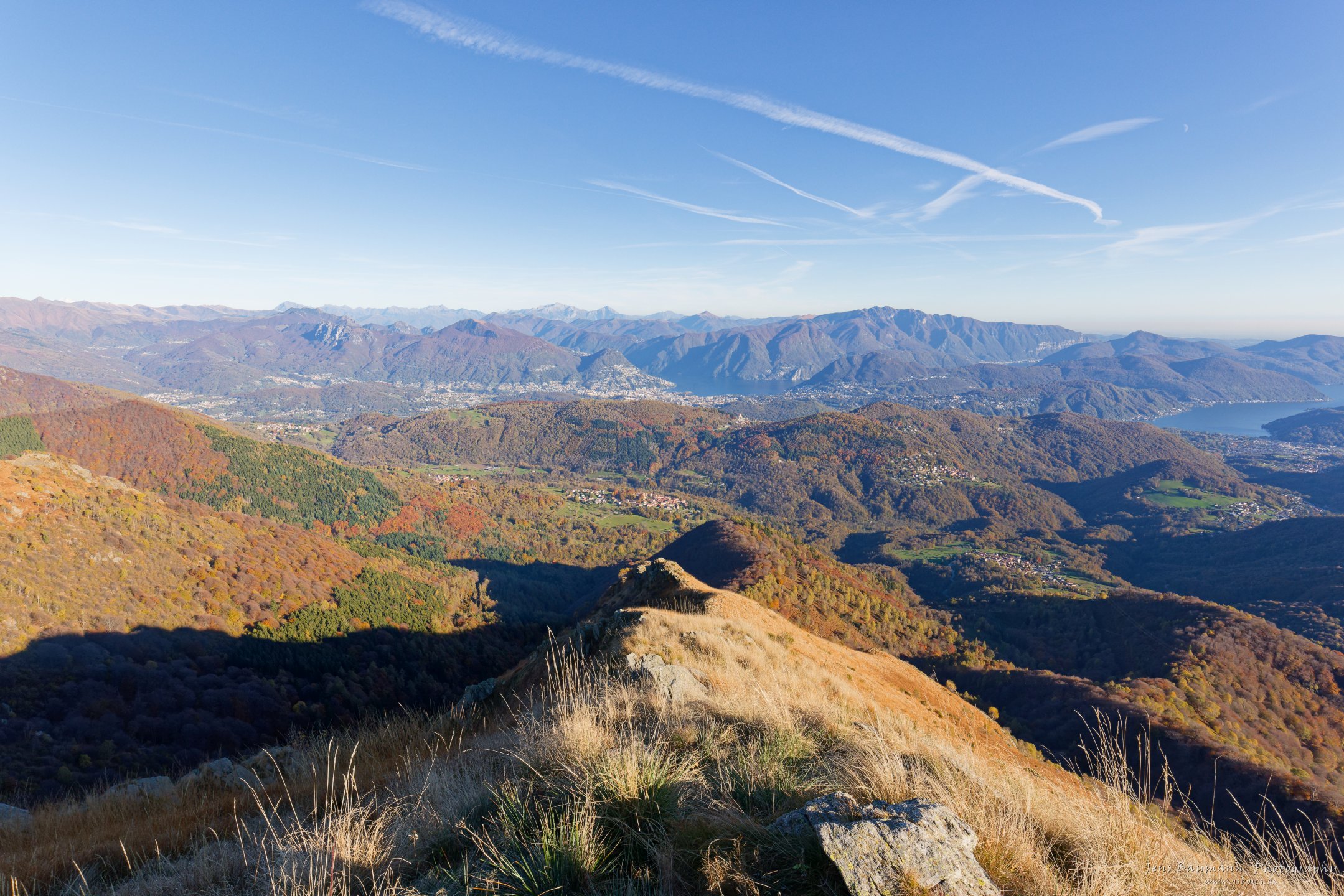 6 Tage ging es dieses Jahr in den Herbstferien an den Lago Maggiore, den wir vom Bodensee in etwas unter 4h erreichen. Leider war der San Bernardino Pass gesperrt (trotz tollem Herbstwetter), so ging es durch den Tunnnel. Unsere Unterkunft war in Maccagno am Ostufer des Lago Maggiore. Von hier aus haben wir mehere Touren gestartet. Das Verzasca Tal mit Staudamm, alten Orten und Steinbogenbrücke haben wir früh am Morgen besucht und waren die einzigen. Es wurde dann aber schlagartig voll! Locarno fanden wir jetzt nicht soo berauschend. Toll war der Monte Lema mit herrlichem Blick über Lago Maggiore und Lugano. Der Botanische Garten der Villa Taranto war auch im Herbst sehenwert. Die Borromäischen Inseln haben wir dann nur von Stresa aus angeschaut. Das Kloster „Santa Caterina del Sasso“ sieht im Abendlicht gut aus, da ist es dann natürlich auch gut besucht. Schönster Aussichtspunkt war der „Giro del Sole“ mit tollem Blick nach Süden – Herbstspaziergang inklusive. Das Wetter war nicht immer ganz so sonnig, aber Ende Oktober noch angenehm. Und das Auto ist totz teilweise kleinster (Berg-)Straßen und viel Verkehr ohne Kratzer und mit Seitenspiegel wieder gut nach Hause gekommen.